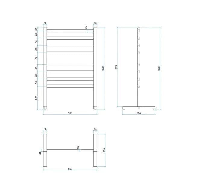Being a freestanding unit offers an excellent advantage in that it can be used during winter and then packed away during summer or used in a visitors room when you have guests and then packed away. The square profile rail comfortably allows for drying of two towels.