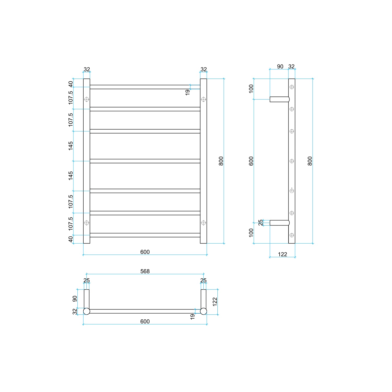 Thermogroup Brushed Straight Round Ladder Heated Towel Rail - Stock Clearance