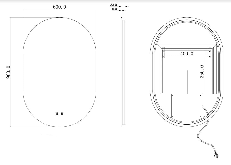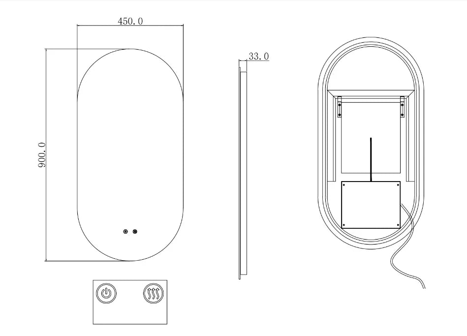 Pill Shape LED Mirror Backlit with Demister 450/600x900mm - 3 Colours Lighting