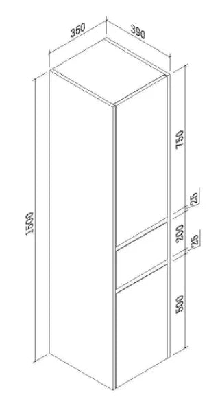 Fingerpull Wall Hung Tallboy & Storage Cabinet - 350x390x1500mm - Various Colours